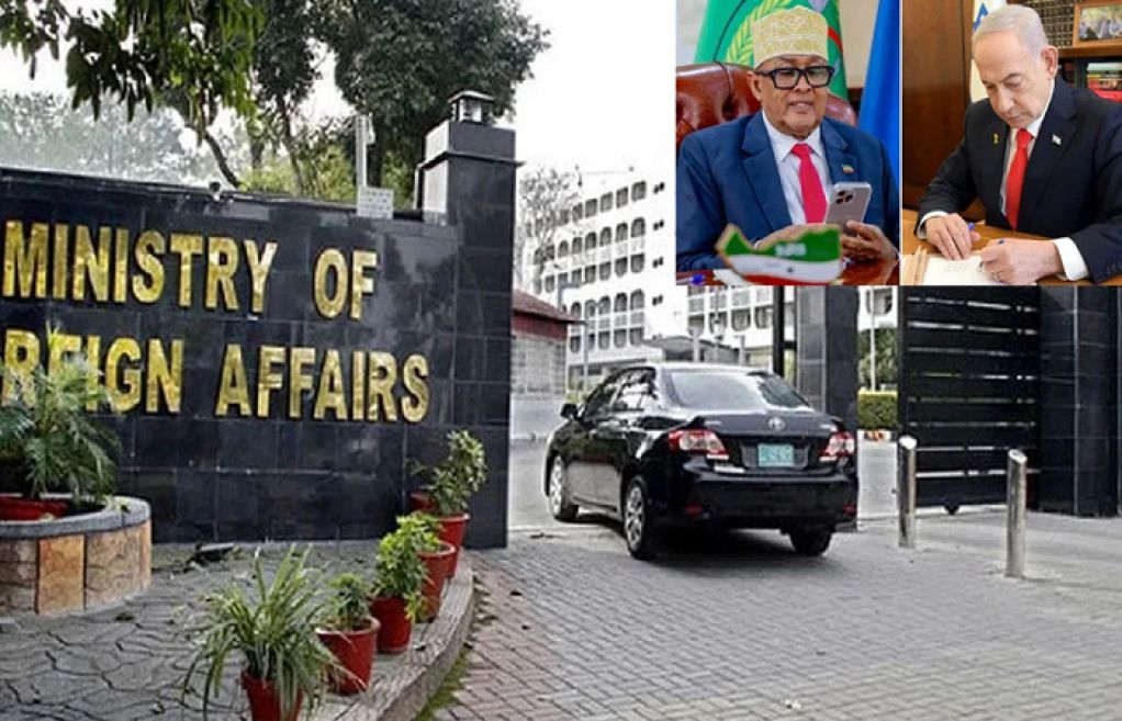 پاکستان نے صومالیہ کی خودمختاری اور علاقائی سالمیت کو نقصان پہنچانے کی کسی بھی کوشش کو مسترد کرتے ہوئے اسرائیل کی جانب سے نام نہاد صومالی لینڈ کو تسلیم کرنے کے اعلان کی شدید مذمت کردی۔ ترجمان دفتر خارجہ کے مطابق پاکستان نے فلسطینی عوام کے حق خودارادیت اور آزاد ریاست فلسطین کی حمایت کا بھی دوبارہ اعادہ کیا ہے۔