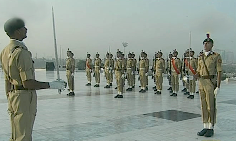 جب کہ مزار قائد پر گارڈز کی تبدیلی کی پروقار تقریب ہوی۔