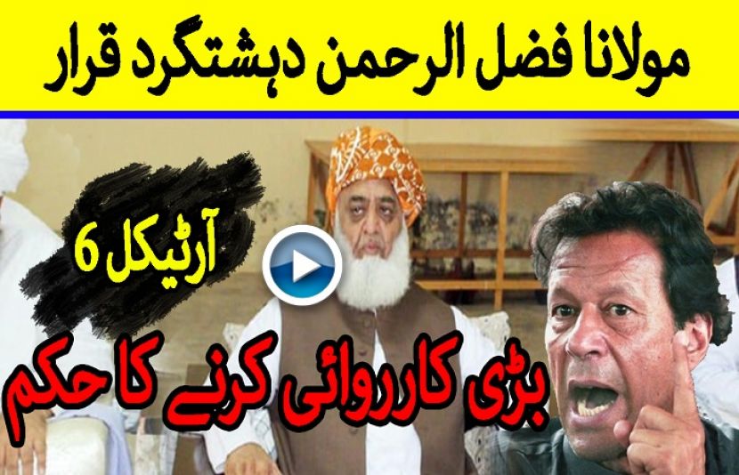 وزیر اعظم عمران خان کا کہنا ہے کہ مولانا فضل الرحمٰن کے بیان پر آرٹیکل 6 کا مقدمہ ہونا چاہیئے۔ مولانا کہہ چکے ہیں جمہوری حکومت گرانے کا کہا گیا تھا، ان کے بیان کی تحقیقات ہونی چاہیئے۔