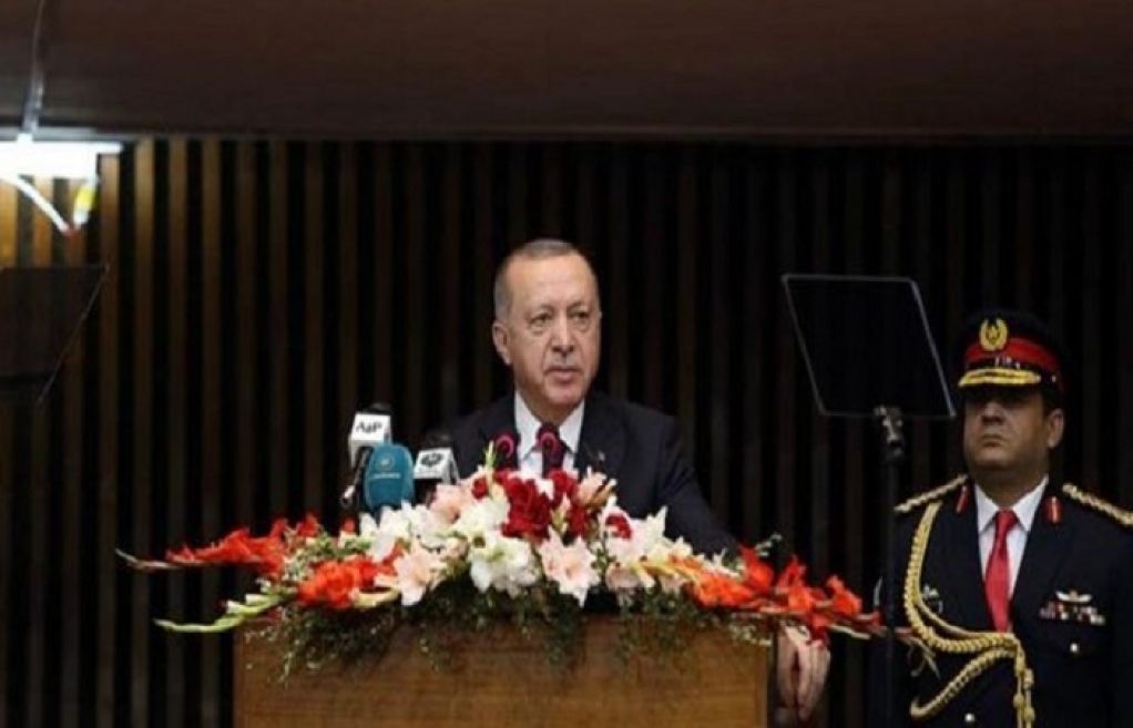 پارلیمنٹ کے مشترکہ اجلاس سے خطاب کرتے ہوئے ترکی کے صدر رجب طیب اردوان نے کہا کہ کشمیر ترکی کیلئے وہی حیثیت رکھتا ہے جوجو پاکستان کے لیے رکھتا ہے۔