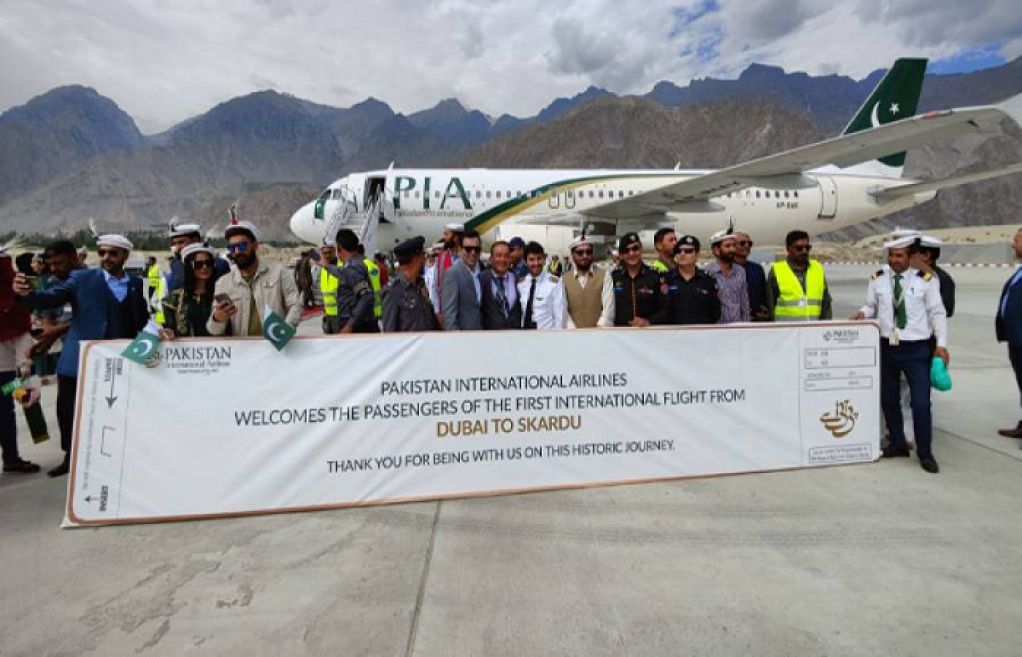 پہلی بار بین الاقوامی پرواز اسکردو ہوائی اڈے پر لینڈ کر گئی، ان پروازوں کے آغاز سے قومی ایئر لائن نے ایک اور اعزاز حاصل کر لیا۔ ان پروازوں کے اجراء سے اسکردو پوری دنیا میں متعارف ہوگا، بین الاقوامی پرواز پر سیاح گلگت بلتستان کے دلکش نظاروں سے لطف اندوز ہوں گے۔