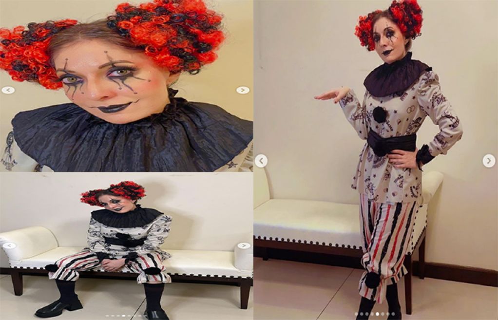 شرمیلا فاروقی نے ’ہیلووین‘ کے موقع پر بھوت بن کر چند تصاویر انسٹاگرام پر شیئر کی ہیں، جس میں وہ سیاہ اور سفید رنگ کا لباس زیب تن کرکے شیطانی جوکر کا میک اوور کئے ہوئے نظر آرہی ہیں۔