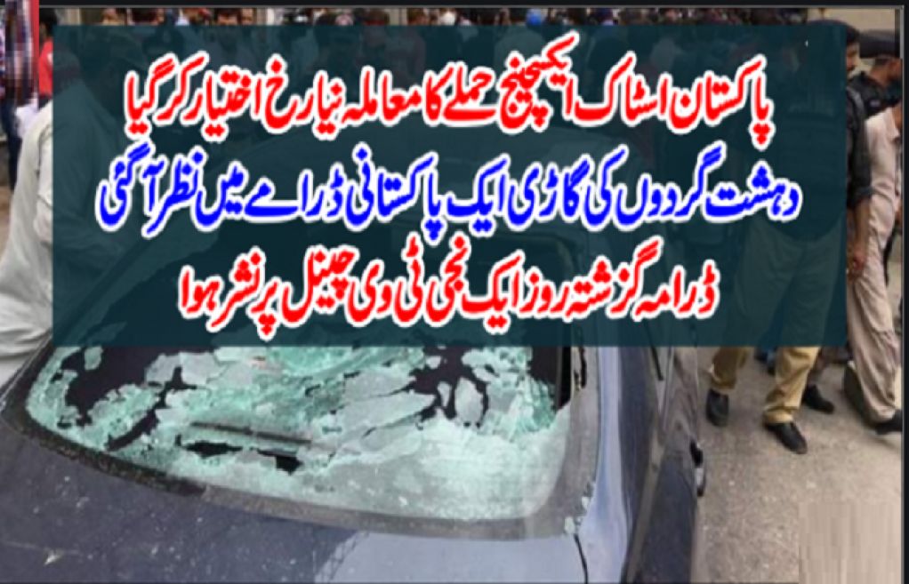 رپورٹ کے مطابق پاکستان اسٹاک ایکسچینج حملے میں زیر استعمال گاڑی بدھ کے روز نشر کیے جانے والے نجی ٹی وی کے ڈرامے میں دکھائی گئی۔