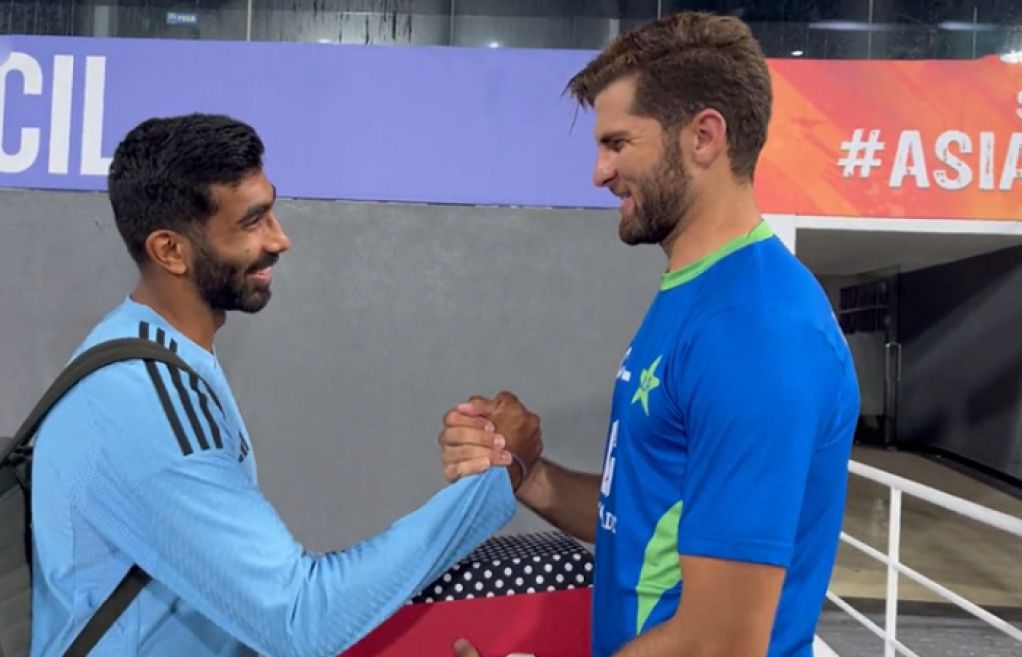 ایشیا کپ میں پاک بھارت ٹاکرے کے دوران قومی کرکٹ ٹیم کے فاسٹ بولر شاہین آفریدی نے بھارتی بولر جسپریت بمراہ سے ملاقات کی۔