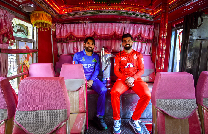 فائنل سے قبل ملتان سلطانز کے کپتان محمد رضوان اور اسلام آباد یونائیٹڈ کے کپتان شاداب خان نے ٹرافی کے ساتھ تصاویر بنوائیں۔