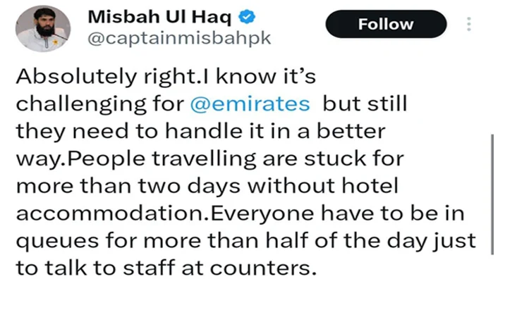 سابق کپتان مصباح الحق اور کامران اکمل براستہ دبئی امریکا جارہے تھے جہاں ان دونوں کو ایئرپورٹ پر کئی گھنٹے انتظار کرنا پڑا۔