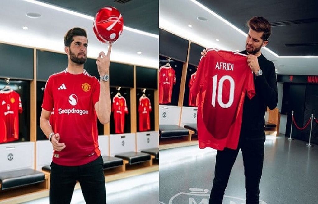 شاہین شاہ آفریدی مانچسٹر یونائیٹڈ کی آفیشل کٹ لانچ کرنیوالے پہلے مسلم اور پاکستانی بن گئے۔ شاہین شاہ آفریدی نےاولڈ ٹریفورڈ میں انگلش پریمیئر لیگ کے فٹبال کلب مانچسٹر یونائیٹڈ کے ہوم گراؤنڈ کا دورہ کیا۔