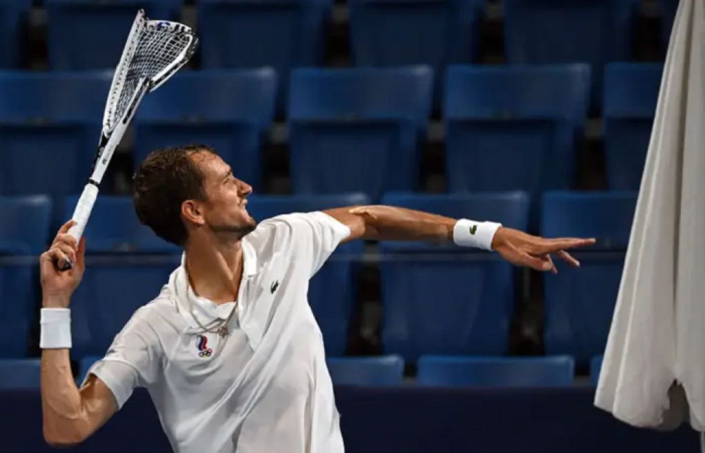 یو ایس اوپن کے پہلے راؤنڈ میں شکست کے بعد روسی ٹینس اسٹار ڈینیل میدودیو نے غصے میں اپنا ریکٹ زمین اور بینچ پر توڑ دیا۔