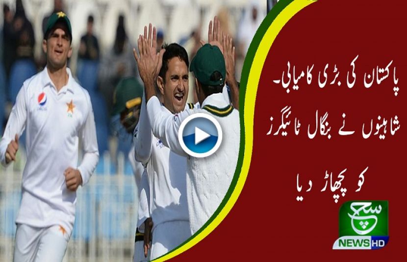 شاہنیوں کی جیت، پہلے ٹیسٹ میں بنگالی ٹائیگرز کو دبوچ لیا، پاکستان نے بنگلا دیش کو ایک اننگز اور چوالیس رنز سے شکست دی، دو ٹیسٹ میچز کی سیریز میں ایک صفر کی برتری حاصل۔