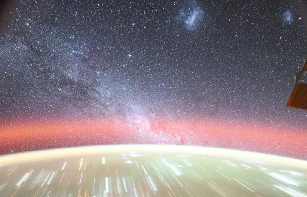 بین الاقوامی خلائی اسٹیشن (بین الاقوامی خلا کا مرکز) سے لی گئی ایک شاندار تصویر میں زمین کے علاوہ ملکی وے کہکشاں اور دو پڑوسی کہکشائیں بھی واضح طور پر دیکھی جا سکتی ہیں۔