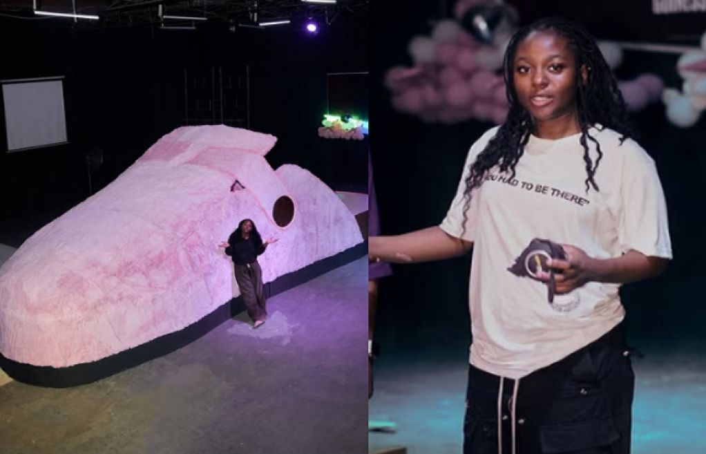 لز سانیا نے نائجیریا میں لیکی، لاگوس کے پکسل پارک میں دیوہیکل کلوگ طرز کے سینڈل کی تعمیر میں 72 گھنٹے گزارے۔