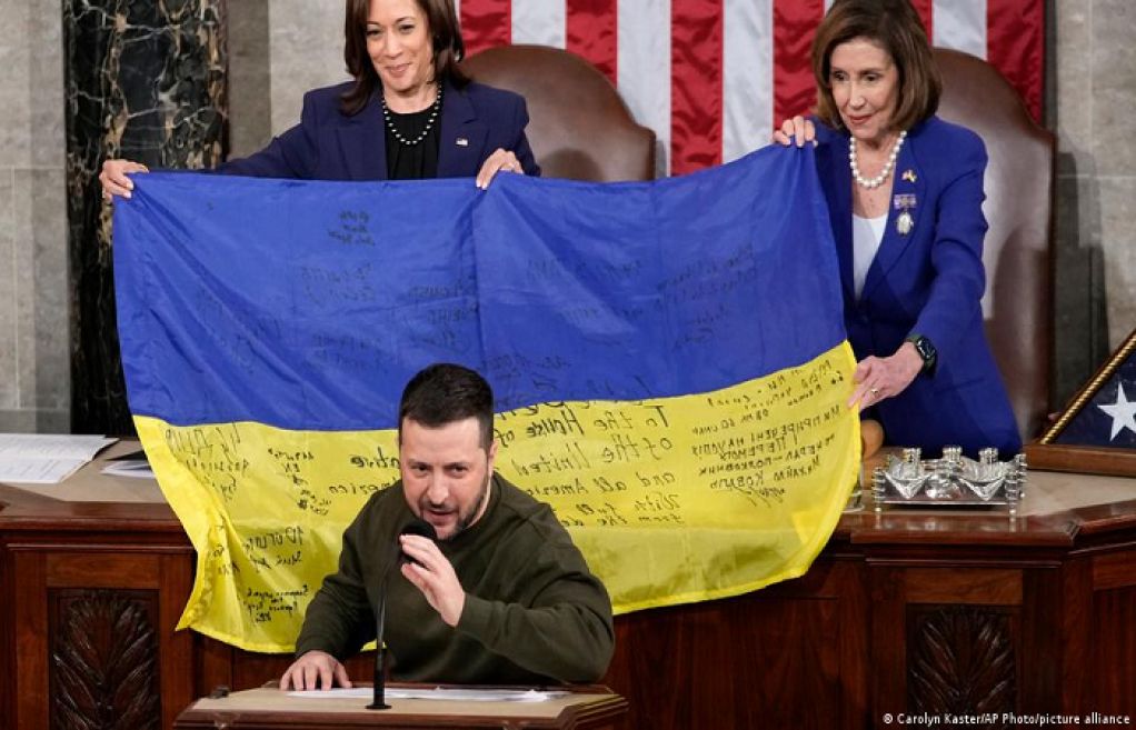 زیلنسکی نے روس کے خلاف جنگ میں یوکرین کی حمایت کرنے پر امریکا کا شکریہ ادا کیا اور انہیں یاد دلایا ہے کہ یوکرین کے لیے فوجی امداد ”خیرات“ نہیں بلکہ دنیا میں جمہوریت اور سلامتی کو یقینی بنانے کیلئے ایک ”سرمایہ کاری“ ہے۔