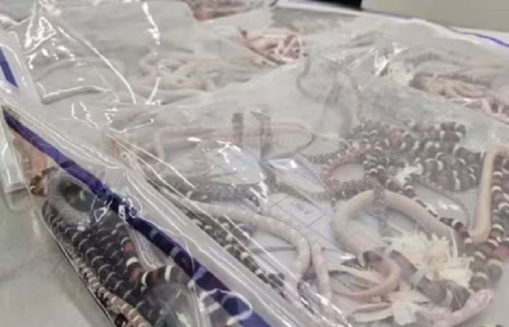 کسٹم حکام نے مسافر کی جیبوں سے وہ بیگ نکالے تو ہر بیگ میں مختلف سائز اور اقسام کے درجنوں زندہ سانپ پائے گئے۔