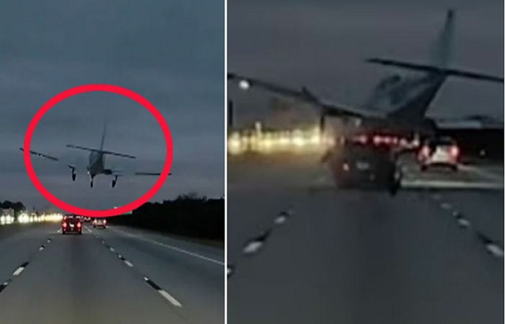 حادثے کی ویڈیو میں جہاز کو ایک مصروف سڑک پر تیزی سے لینڈنگ کے دوران گاڑی کے اوپر ٹکراتے اور پھر ہائی وے پر گرتے دیکھا جاسکتا ہے اس دوران جہاز سے نکلنے والی چنگاریاں اور ملبہ بھی فضا میں اڑتے دیکھا گیا۔