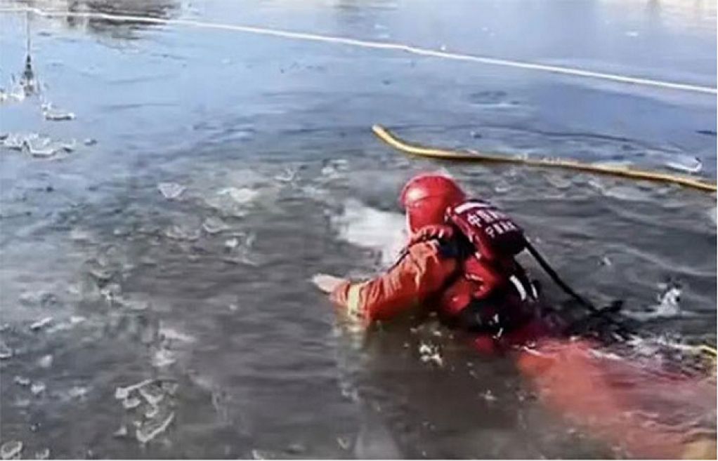 یہ واقعہ 6 دسمبر کو شمال مغربی چین کے علاقے ٹونگشین کاؤنٹی میں پیش آیا، جہاں یہ بچہ ایک منجمد جھیل کے اندر گر گیا تھا۔