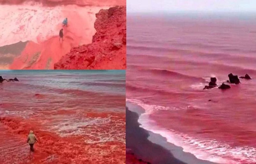ایران کے صوبہ ہرمزگان کے جزیرہ ہرمز پر اس وقت ایک نادر قدرتی منظر دیکھا گیا جب ساحل کا پانی کا رنگ اچانک سرخ ہو گیا۔
