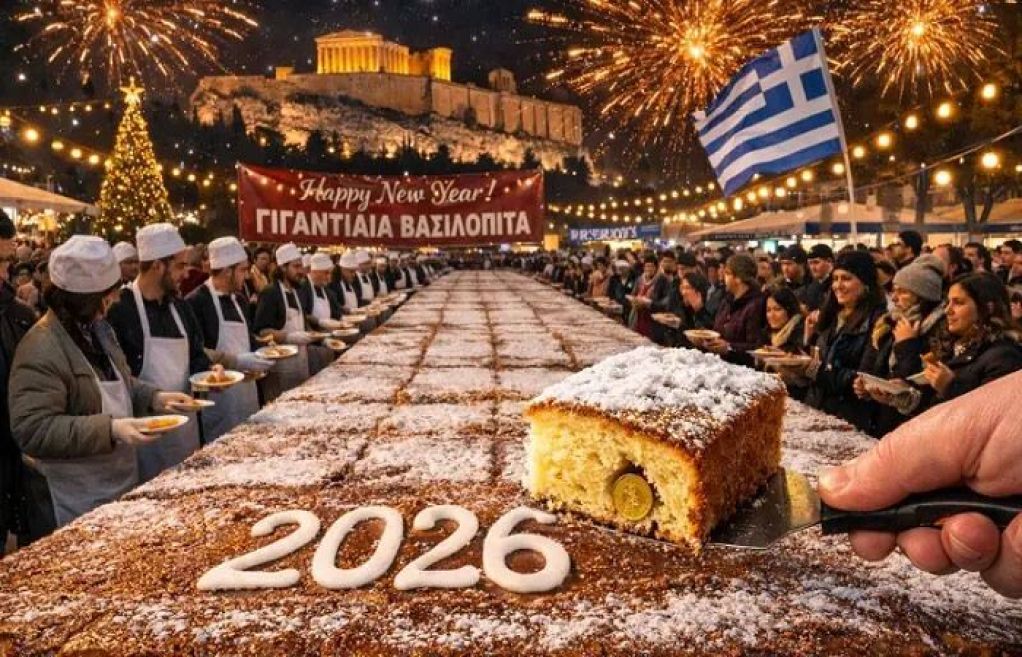 یونان میں نئے سال کی آمد کے موقع پر ایک منفرد، یادگار اور تاریخی تقریب منعقد کی گئی، جہاں 10 ٹن وزنی دیوہیکل روایتی کیک تیار کر کے عوام کے سامنے پیش کیا گیا، جسے منتظمین نے اب تک کا سب سے بڑا واسيلوپیتا کیک قرار دیا۔
