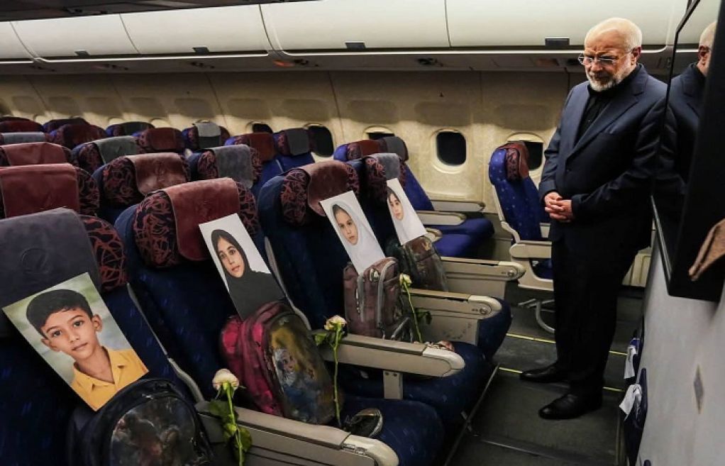 ایرانی سپیکر باقر قالیباف کی جانب سے شیئر کی گئی تصویر میں امریکا اور اسرائیل کے حملوں میں شہید ایرانی بچوں کی پھولوں کے ساتھ تصاویر نشستوں پر رکھی دیکھی جا سکتی ہیں جن میں بستے اور جوتے بھی نمایاں ہیں۔